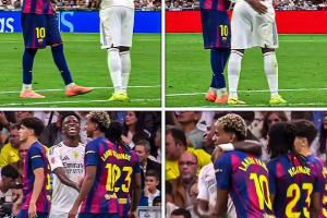 双方赛后爆发冲突,维尼修斯和亚马尔剑拔弩张。但他们在赛中还曾欢笑握手,拥抱致意。